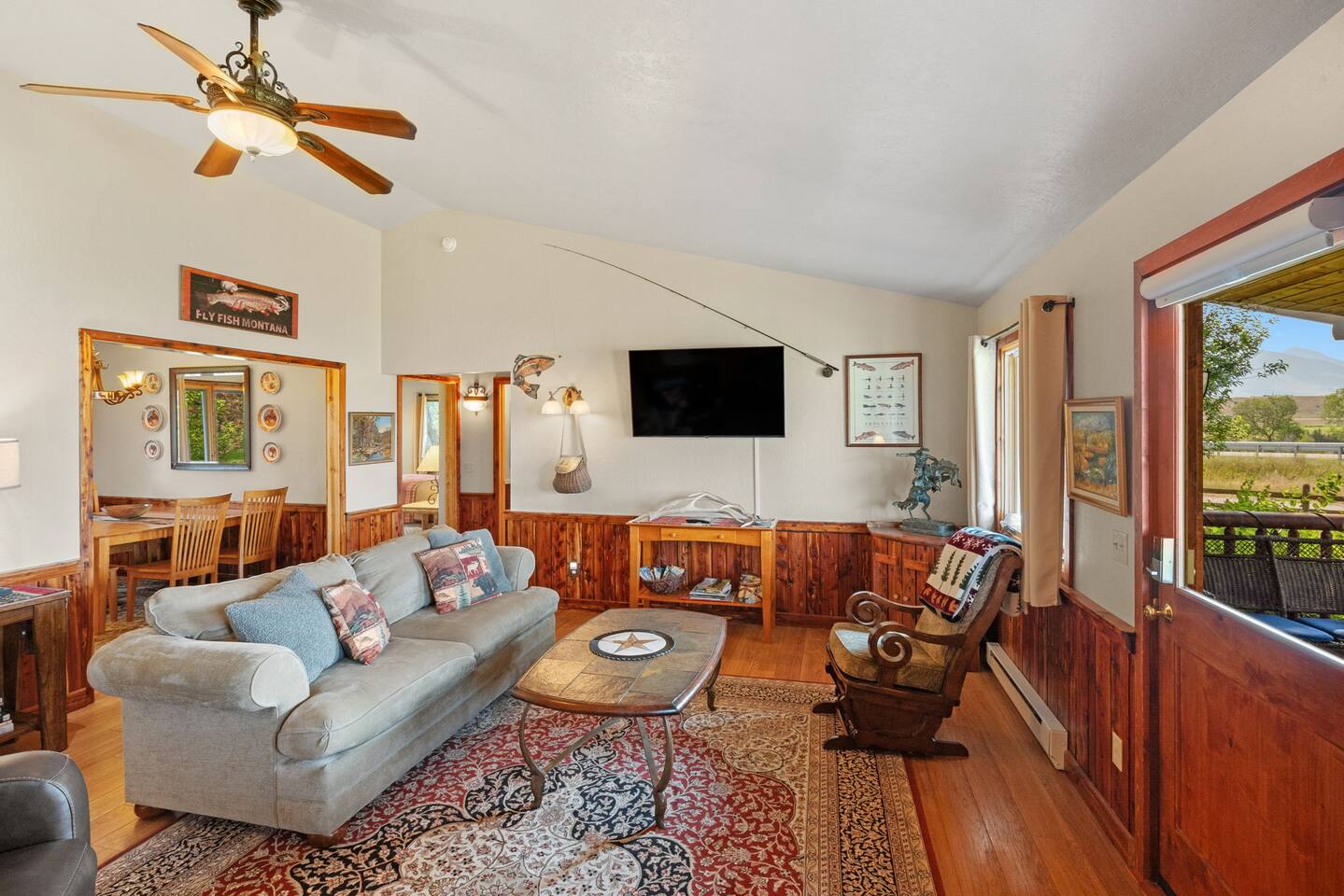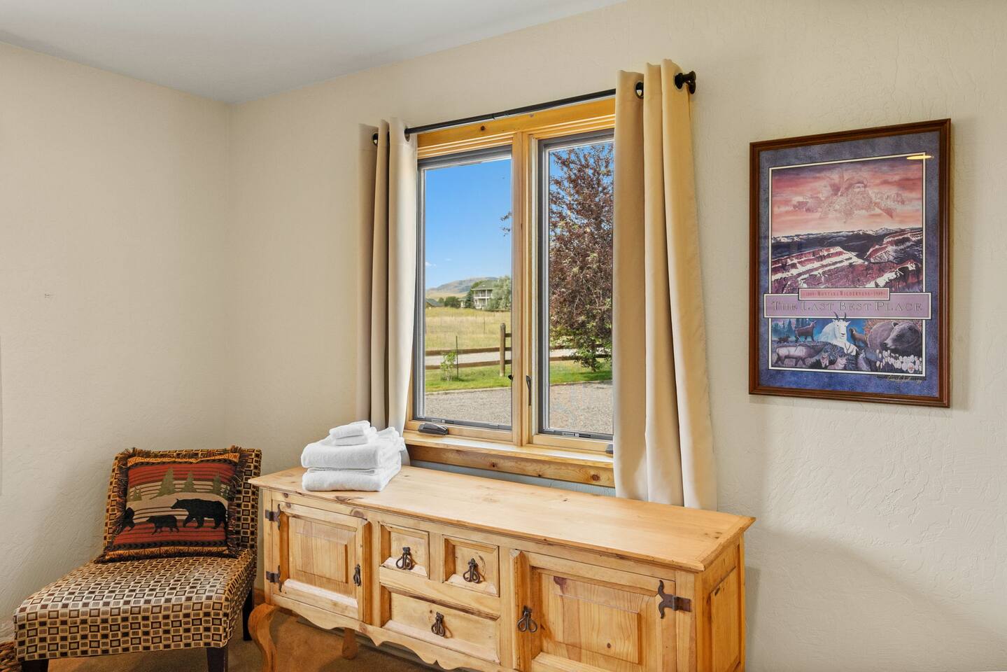 Paradise Ranch Retreat is the perfect home base for your family's ultimate Montana adventure vacation. With plenty of space for you and your family to spread out and enjoy Montana's great outdoors, Paradise Ranch Retreat boasts: - Two clean, comfortable, & well-equipped cabins. The cabins are spaced near enough for connection & just far enough apart for privacy - A lush, green, spacious yard perfect for enjoying breathtaking mountain views while grilling outside, playing yard games, and spending time with loved ones. - Fishing river access steps away on the mighty Yellowstone River - Close to Yellowstone National Park, perfect for your Yellowstone Tour or visit to Old Faithful - Conveniently located just off Highway 89 and near world-famous Chico Hot Springs, Sage Lodge, Old Saloon- perfect for those wondering where to stay in Montana - Well maintained, with easy check-in & responsive local manager - WiFi, large smart TVs, indoor fireplaces, large yard, BBQ grill - Frequently visited by wildlife including elk, deer, bald eagles, moose, and cute little bunnies! - 10% weekly discount, ideal for Montana vacations for couples, friends, or families This property is the perfect home-away-from-home for your larger gatherings,! With room to comfortably accommodate up to 12 people, everyone can join in the fun! This property is perfect for family gatherings, wedding parties, church retreats, and film crews! Plus, there are plenty of separate spaces where people can unwind and enjoy quiet time away from the group. At the Paradise Ranch Retreat, you'll enjoy the flexibility and convenience of having two separate residences: The Moose Horn Lodge and The Trout House Both are beautifully decorated, immaculately clean cedar log homes in Montana’s majestic Paradise Valley! We are on the doorstep of Yellowstone National Park (Gardner entrance is 35 miles South) and just a short drive south of historic downtown Livingston, Montana. The homes boast a large well-manicured lawn with mature trees, fantastic views of Emigrant Peak (el. 10,926 feet!), and access to Yellowstone River and its exceptional fishing and abundant recreation opportunities. The Moose Horn Lodge at Paradise Ranch Retreat features welcoming Western decor throughout 3 bedrooms, 2 bathrooms, and a spacious, open living and dining area. An inviting gas fireplace and a large smart TV, make this a comfortable retreat for six. The proud Montana native owners live in nearby Bozeman and regularly update household items including comfy cozy bedding, cookware, linens, and towels. In the living area, you can snuggle up on the inviting couch and two oversized recliners, next to the gas fireplace and enjoy the breathtaking view of Emigrant Peak. Pass the time bird and wildlife watching with the binoculars! Or, enjoy YouTube TV or your favorite streaming service on the large smart TV. Partial walls separate the kitchen and dining room from the living area, making it an ideal entertainment space! Cook your favorite Montana recipes in our well-appointed kitchen - complete with a refrigerator, freezer, stove, oven, microwave, dishwasher, coffee maker, toaster, cookware, Western-themed dinnerware, flatware, and glassware. There is plenty of room for all in our dining area! Enjoy your meals, play a game, or share your adventure stories and photos at our beautiful wooden table featuring seating for six. The kitchen island has a bar with three matching wooden chairs for extra seating. Enjoy the majestic mountain views from each of the three bedrooms. Every bedroom features custom-made log bed frames with comfortable bedding (updated regularly), bedside tables with Western decor lamps, closets, luggage racks, and wooden wardrobes. Two full bathrooms provide all the comforts of home including fresh towels, hair dryers, shampoo, conditioner, and body wash. One of the two full bathrooms hosts the washer and dryer and has plenty of room for you to wash and fold laundry. Outdoor, we feature a covered front porch where you can enjoy your morning coffee or evening cocktails amongst the glorious Montana views. The mountain sunrises and sunsets will astound you. Use the outdoor grill and BBQ to host your cookout on the spacious lawn adjacent to Paradise Ranch Retreat's Trout House (a separate home that sleeps 6). The Trout House features two bedrooms- one with a beautifully framed queen-sized bed and one with a charming full (bottom)/twin (top) bunk bed that kids will adore! They will feel like they're in a Yellowstone cabin! The vaulted ceilings, high windows, and mountain views enhance your comfort in this home. The living room features a welcoming stone gas fireplace, a large smart TV, and comfortable seating. Look for the locally discovered fossils, shells, and petrified wood hidden throughout the stonework of the inviting gas fireplace! A full sleeper sofa is available in the living room; an ideal alternative sleeping arrangement for a second adult party. A fully equipped kitchen and a full bathroom with a washer and dryer provide all the comforts of home. A small bar top with two stools separates the living room from the meticulously clean and fully equipped kitchen with a refrigerator, freezer, stove, oven, microwave, coffee maker, toaster, cookware, dinnerware, flatware, and glassware. Outdoor, the Trout House hosts a propane BBQ grill and a large patio – perfect for enjoying the fresh Montana air! In addition, on the spacious lawn surrounding both residences, you can enjoy many traditional lawn games such as cornhole and Connect 4 or Stargaze without the reflections of bright city lights. On a clear, night in at Paradise Ranch Retreat, the stargazing is pure magic. REVIEWS, PLEASE NOTE - As of November 2024 Paradise Ranch Retreat transitioned Property Management duties to the owner, Jennifer. We're so thankful for the amazing support Tanya Smith provided as our Property Manager over the last seven years! Unfortunately, we lost years of our cherished FIVE-S