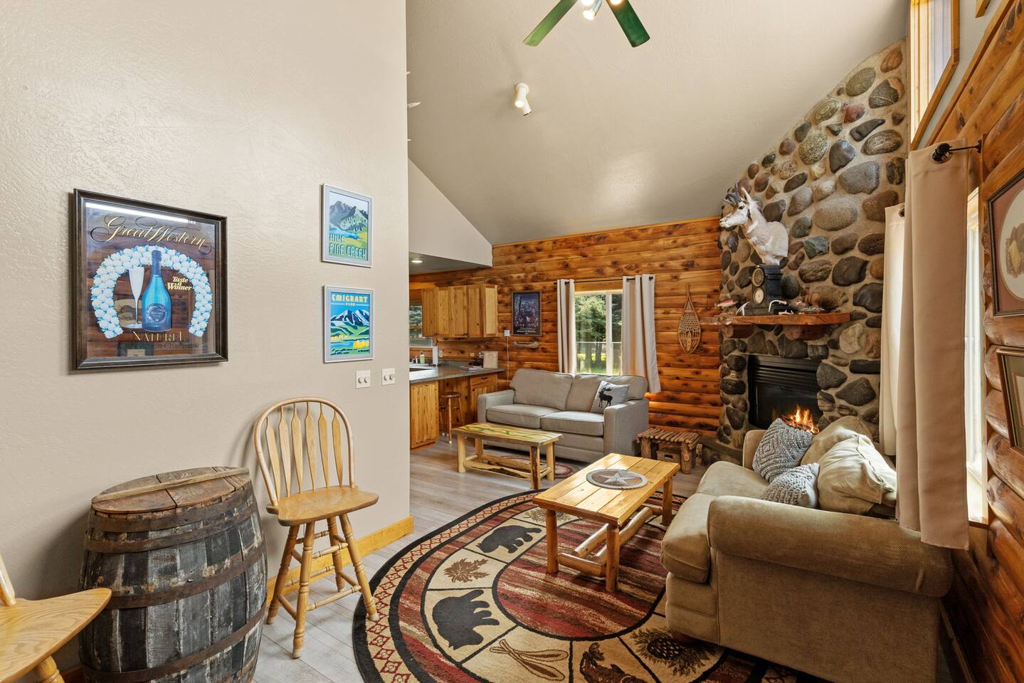 Enjoy easy access to this welcoming, very clean cedar log home in Montana’s majestic Paradise Valley! We are on the doorstep of Yellowstone National Park and just a short drive south of historic downtown Livingston, Montana. The home boasts a well-manicured lawn with mature trees, fantastic views of Emigrant Peak (el. 10,926 feet), and access to Yellowstone River and its exceptional fishing and abundant recreation opportunities. The home features two bedrooms- one with a beautifully framed queen-sized bed and one with charming full/twin bunk beds that kids will adore! A fully furnished kitchen and a full bathroom with a washer and dryer provide all of the comforts of home. The living room features a welcoming stone gas fireplace, a large smart TV, and comfortable seating. A full sleeper sofa is available in the living room; an ideal alternative sleeping arrangement for a second adult party. Look for the locally discovered fossils, shells, and petrified wood hidden throughout the stonework of the inviting gas fireplace! The vaulted ceilings, high windows, and mountain views enhance your comfort in this home. A small bar top with two stools separates the living room from the meticulously clean and fully supplied kitchen complete with a refrigerator, freezer, stove, oven, microwave, regular coffee maker, toaster, and cookware, dinnerware, flatware, and glassware. Outdoor, the Trout House hosts a propane BBQ grill. Host your cookout on the spacious lawn adjacent to Paradise Ranch Retreat’s Moose Horn Lodge (a separate home that sleeps 6), which is available to rent with the Trout House. To book both the Moose Horn Lodge and Trout House, check VRBO listing #1527716. Note that this listing is to reserve the Trout House only - perfect for groups up to 6 people. The proud Montana native owners regularly update household items, including comfy-cozy bedding, cookware, linens, and towels. The Trout House is one of Paradise Ranch Retreat’s two cedar log homes in the heart of Paradise Valley. It is rurally located four miles from the town of Emigrant, Montana, which sits between the majestic and picturesque Absaroka and Gallatin Mountain Ranges. Emigrant hosts a gas station, a well-stocked convenience store, post office, WildFlour Bakery, Follow Ur Nose BBQ, the Old Saloon, Livery Stable, and Angler's West Fly Fishing shop. We have a variety of lodging options for Paradise Valley Vacation Rentals. Paradise Ranch Retreat’s Moose Horn Lodge sleeps six and is available separately, or both homes are available as Paradise Ranch Retreat. Paradise Ranch Retreat (sleeps 12) on airbnb: airbnb.com/h/paradiseranchretreat Moose Horn Lodge (sleeps 6) on airbnb: airbnb.com/h/mosehornlodge Paradise Ranch Retreat is located in the heart of Paradise Valley. It is rurally located four miles from the town of Emigrant, Montana, which sits between the majestic and picturesque Absaroka and Gallatin Mountain Ranges. Emigrant hosts a gas station, a well-stocked convenience store, a post office, WildFlour Bakery, Follow Ur Nose BBQ, the Old Saloon, Livery Stable, and Angler's West Fly Fishing shop (3.7 miles away, 206 Railroad Ln, Emigrant, MT 59027). This area offers remarkably high-quality food, libation, experiences, and entertainment options where you can enjoy a Yellowstone cabin rental experience, without the resort fee! Sage Lodge (5.5 miles away, 55 Sage Lodge Dr, Pray, MT 59065) luxury fly-fishing resort is just a few miles away and if you're looking to customize Montana vacation packages for couples, you can indulge in one of their spa treatments or relax at the bar and restaurant while enjoying the beauty of the Montana landscape. Be sure to check out their great wine selection and fantastic wood-fired pizza! Nestled under Emigrant Peak, world famous Chico Hot Springs Montana Resort and Day Spa (7.3 miles away, 163 Chico Road, Pray MT 59065) offers the quintessential Montana experience. Established in 1900 and open to the public, Chico is a year-round destination resort offering fine dining, a saloon with live music every weekend, a gift shop, a full-day spa, and natural hot springs pools. Speaking of hot springs, nearly Yellowstone Hot Springs (27 miles, 24 E Gate Rd, Gardiner, MT 59030) offers a one-of-a-kind soaking experience. Nestled between mountain ranges along the Yellowstone River, it’s a serene escape. The mineral-rich, flowing waters melt away stress as you relax with stunning mountain views and eagles soaring above Montana’s big sky. Visit us to enjoy our soothing pools and welcoming staff. Paradise Valley offers amazing year-round seasonal outdoor experiences, including cross-country skiing in the winter, to newborn wildlife viewing in the spring, hiking and white water rafting in the summer, or a hunting adventure in the fall. We also have the most comprehensive guidebook, plus other offers, exclusively for our guests. This is all designed to help you explore and unwind while you experience the best Montana has to offer. All the amenities and experiences available in the valley truly make this the best place to stay in Montana! Other Things to Note: There are underground sprinklers in the yard so keep in mind they will come on at night in the summer. ** IMPORTANT: Please mind children and pets as we are located close to Highway 89, and a seasonal swift and deep canal is located just west of the Trout House beyond the lawn. ** Offer subject to availability with no blackout dates, nightly price varies based on season. Local Music! Pine Creek Cafe (12 miles away, 2496 E River Rd, Livingston, MT 59047), Follow Ur Nose BBQ (3.8 miles away, 4 Overlook Rd, Emigrant, MT 59027) and the Old Saloon (3.7 miles away, 210 Railroad Ln, Emigrant, MT 59027) regularly host live music, headlining bands such as The Black Lillies, The Turnpike Troubadours, Charlie Stout, Corb Lund and many more. Visit the Pine Creek Lodge, Old Saloon or Follow Ur Nose BBQ event pages for details on how to grab tickets for you